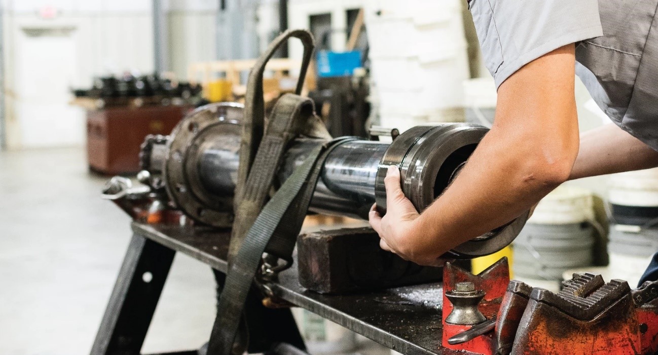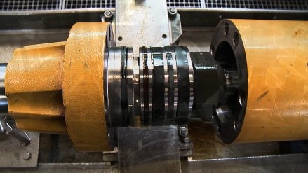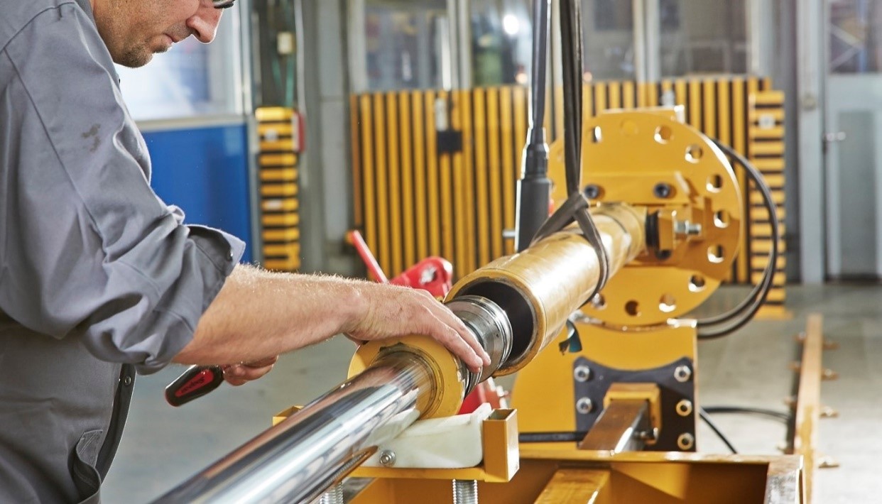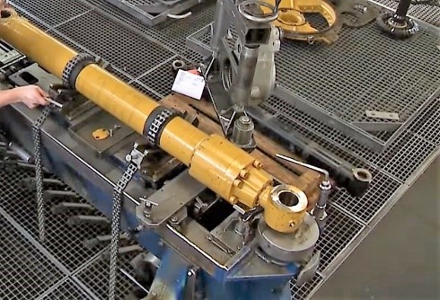 . Em seguida, puxa-se a haste para fora do cilindro hidráulico usando cordas de elevação, se necessário.