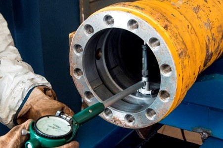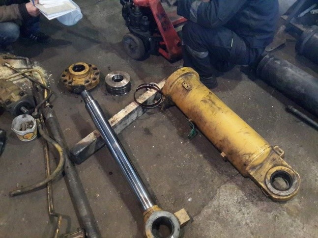 Tendo desmontado os componentes do cilindro hidráulico, procede-se a perícia complementar para apurar quais dos componentes estão em bom estado para reutilização, e quais irão precisar de reforma, ou até da fabricação de novos componentes. Feita esta análise pode se encontrar ou não os seguintes defeitos nos componentes do cilindro hidráulico : . A camisa está em bom estado na parte externa, mais precisa de brunimento na parte interna. Verifica-se da seguinte forma, conforme fotos abaixo: