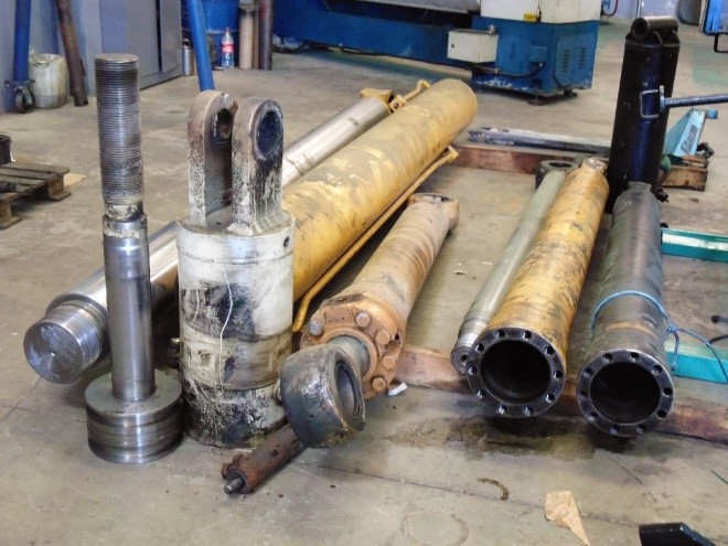 Peritagem Preliminar A peritagem ou análise de problemas com os cilindros hidráulicos a serem recuperados, inicia-se já no recebimento dos mesmos em nossa expedição. Neste primeiro contato com as peças, já é possível fazer uma vistoria preliminar a olho nú antes de proceder a desmontagem. Nesta perícia inicial já se pode caracterizar os seguintes problemas nos cilindros hidráulicos: . Olhais quebrados ou trincados . Camisas trincadas ou quebradas . Hastes dobradas