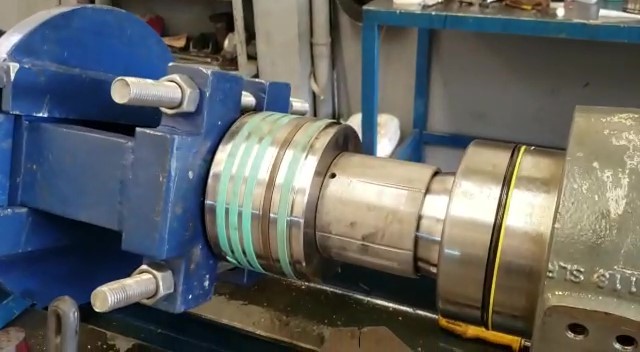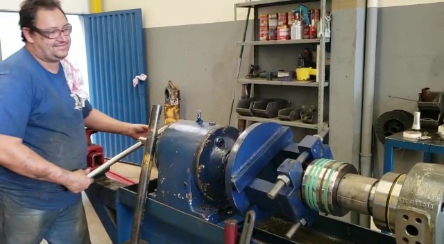 Os cuidados a serem tomados para a montagem do cilindro hidráulico devem ser respectivamente: ● Todos os componentes a serem montados são lavados utilizando jato de água de alta pressão e produtos desengraxantes. ● Secagem e perícia dos componentes antes de se iniciar a montagem. ● Limpar o interior da camisa antes de fazer a montagem, ● Proteger a superfície da haste afim de evitar riscos, ● Montar as vedações e guias com ferramentas próprias afim de evitar estragá-las (foto abaixo), e testar o cilindro em bancada para simular o seu funcionamento, e evitar retrabalho com a posterior abertura dos componentes internos, atentando-se a pressão de trabalho no teste. |