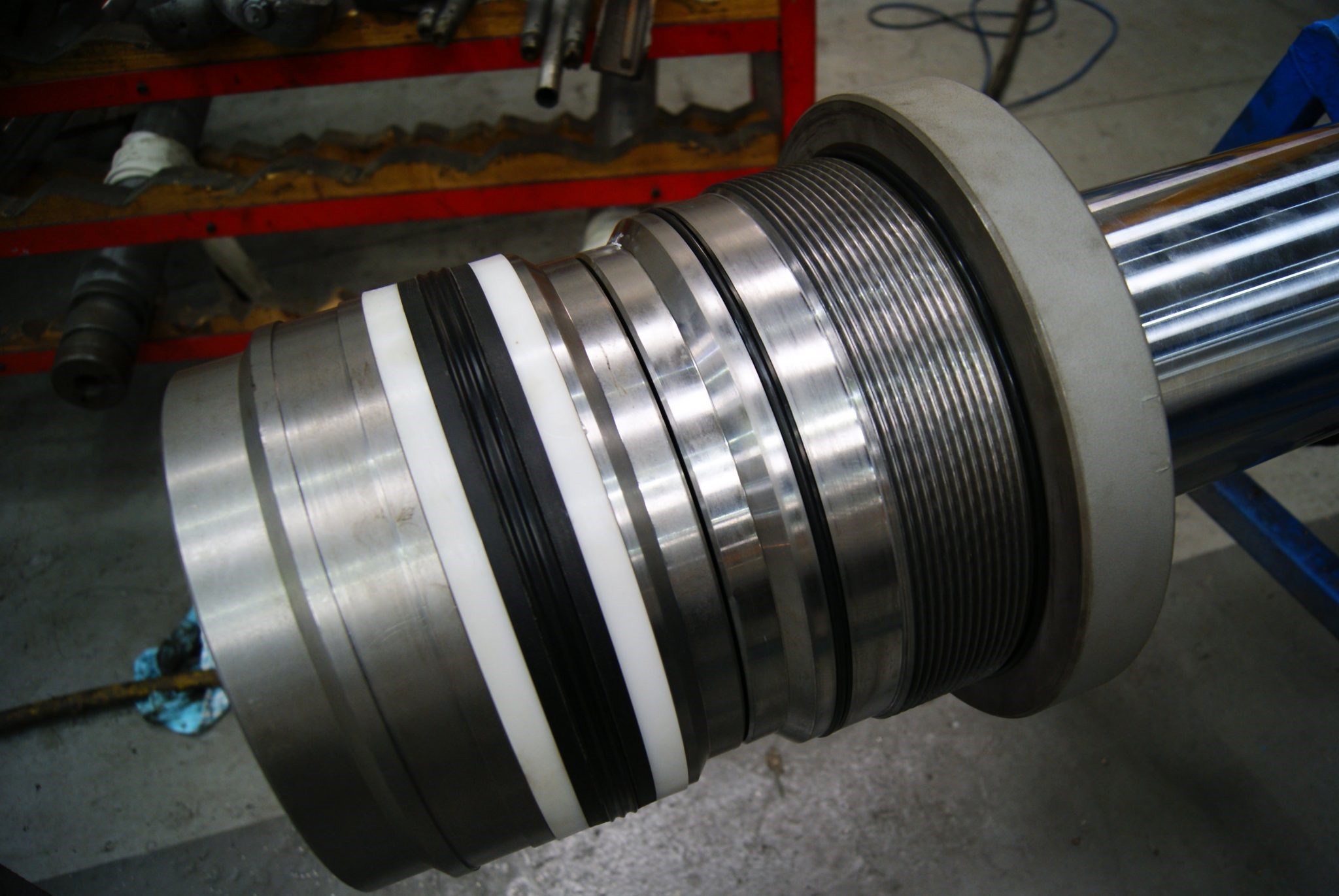 No êmbolo, encontram-se as vedações que separam a câmara inferior da câmara exterior, no cabeçote encontram-se as vedações principais como guias e anel raspador que é utilizado para evitar a entrada de sujeira e resíduos no cilindro. A haste é presa ao embolo e ao cabeçote formando um conjunto montado posteriormente na camisa, conforme fotos abaixo: